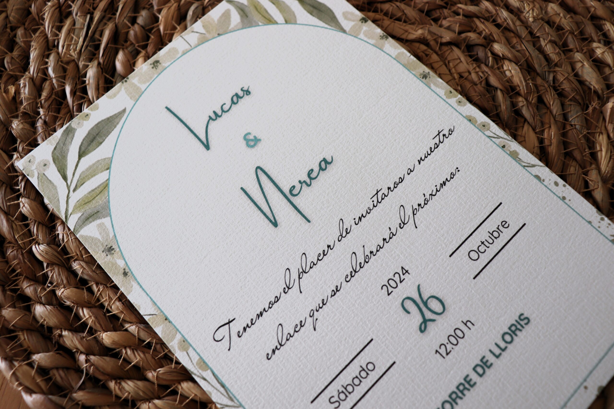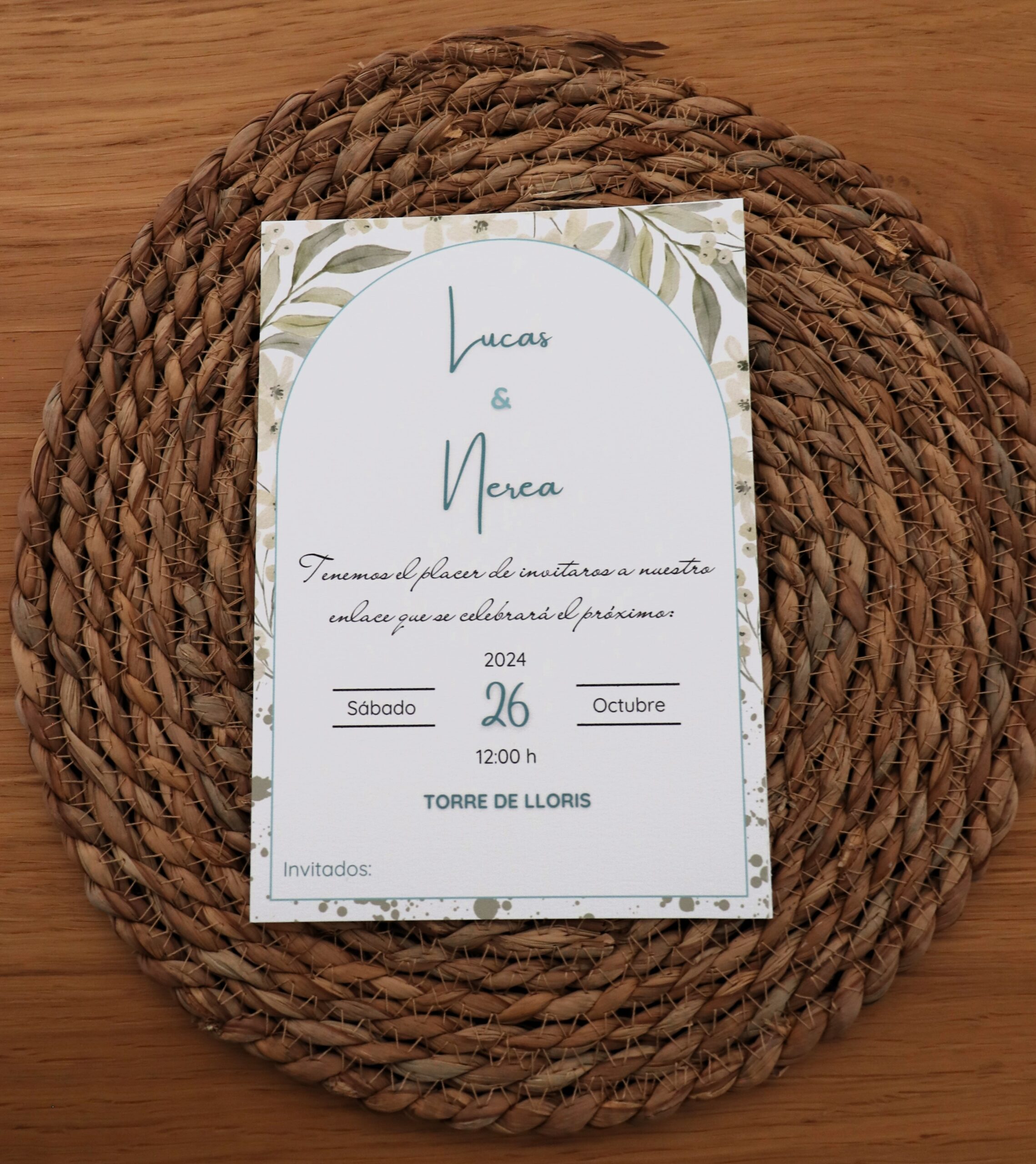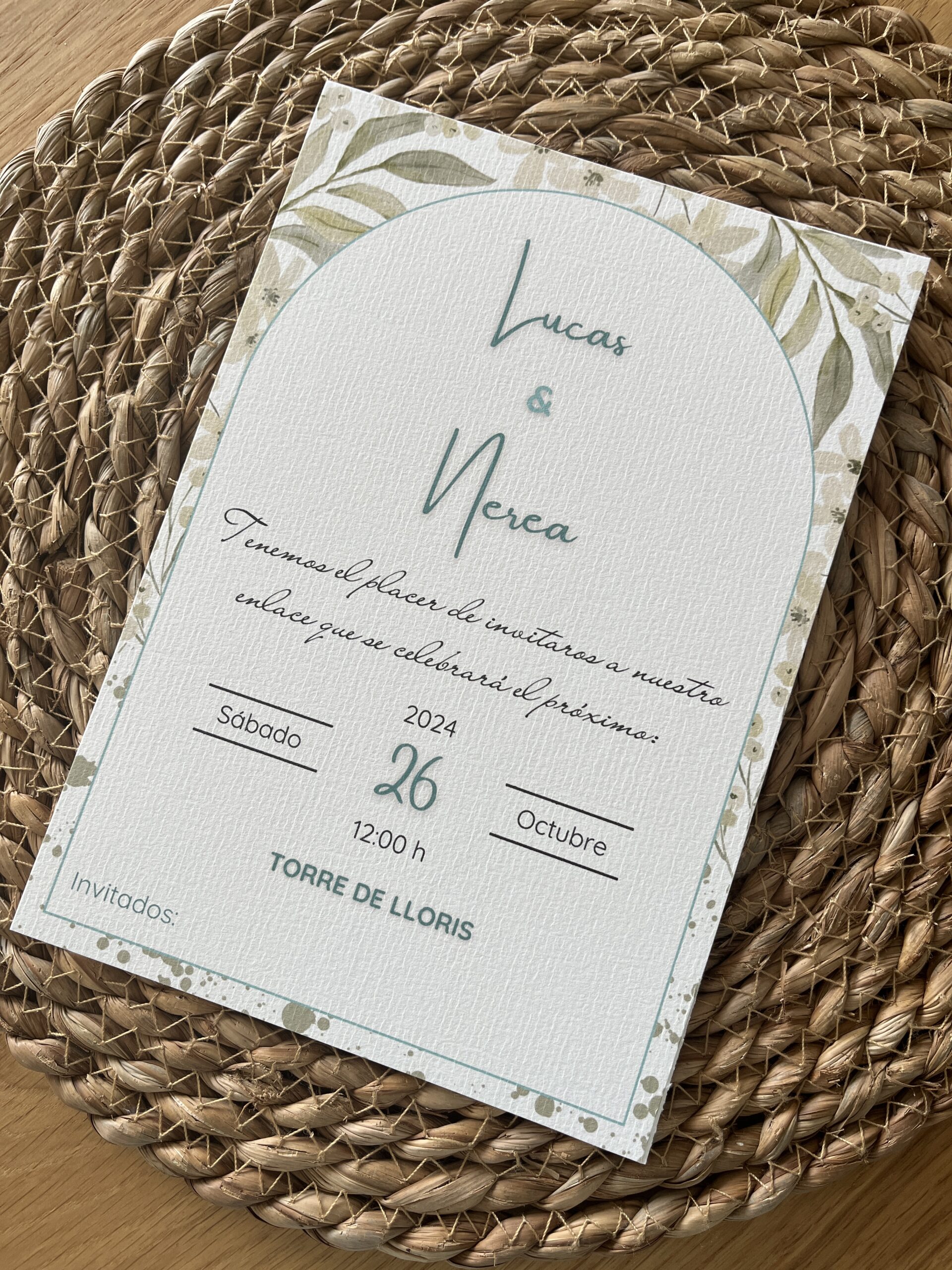 Una invitación con alma bohemia, pensada para parejas que valoran la delicadeza, el equilibrio y la estética natural.